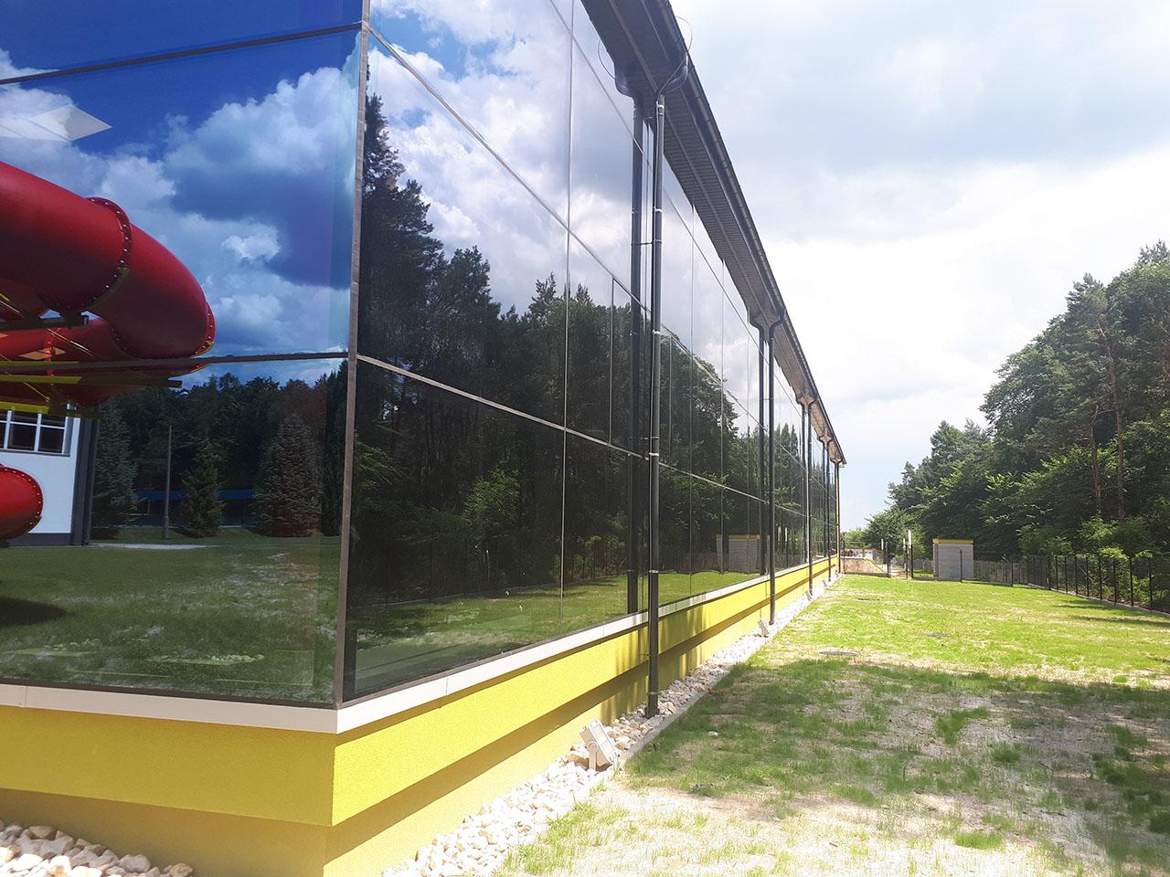 Na výrobu sklenenej fasády bol použitý efektový stĺpovo-priečny systém Aluprof MB-SR 50N a na vetranú fasádu boli použité HPL panely Trespa na nosnej konštrukcii BSP